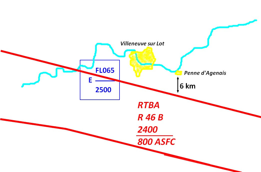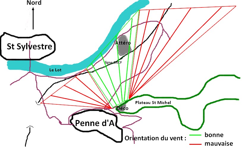 Terrain d’atterrissage : attention à la ligne de chemin de fer au sud du terrain, présence d’une ligne électrique.